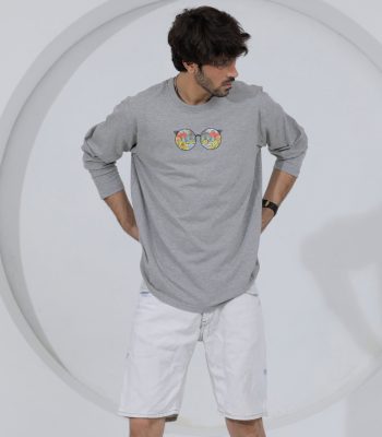 Full Sleeve Printed Round Neck Gray T-Shirt